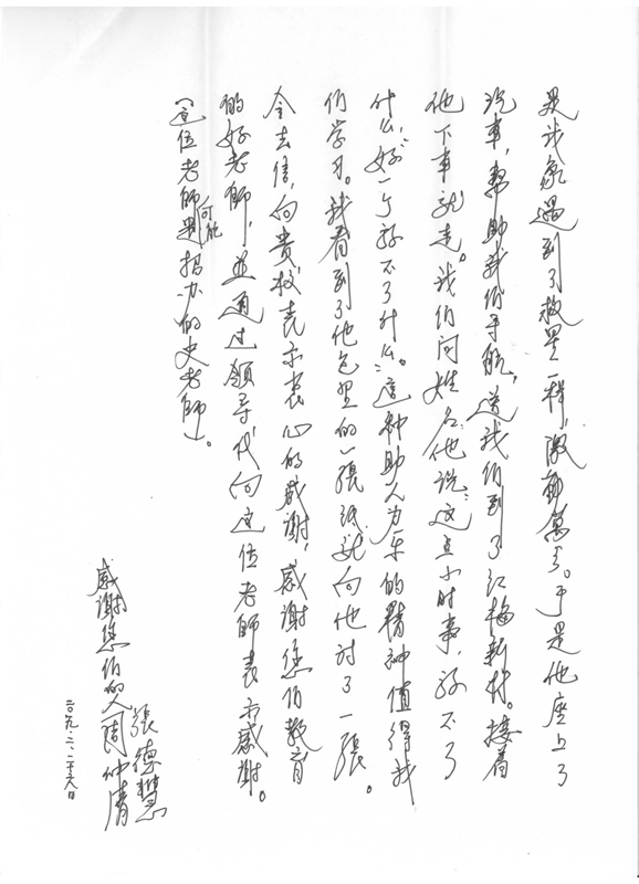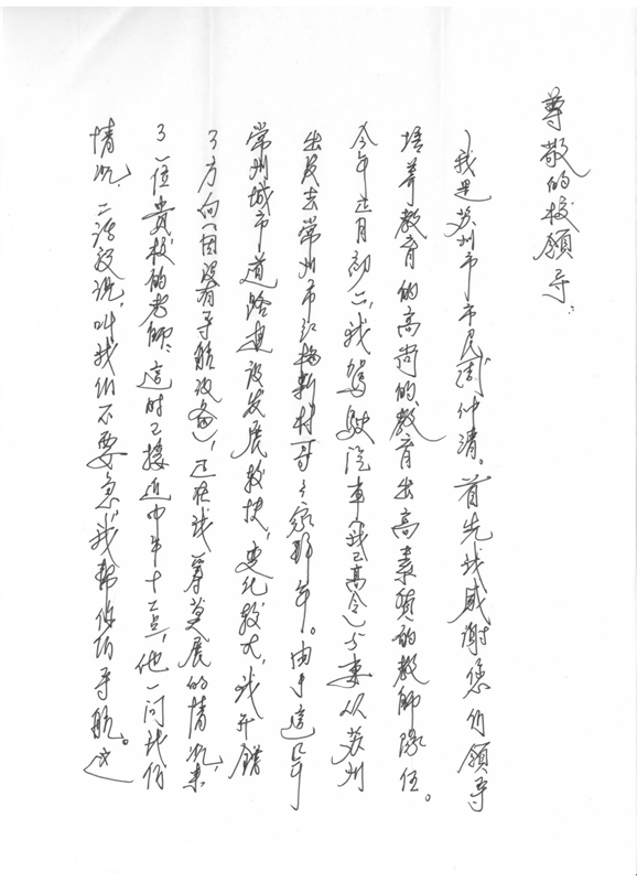苏州市民来信致谢我校及史京军老师