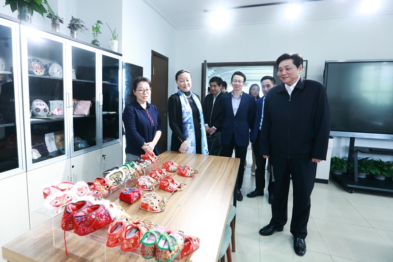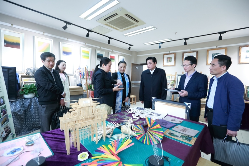 调研期间,韩九云一行首先考察了我校文化展示中心,先后参观了学校校史陈列馆、面料陈列馆、服饰文化馆(含京剧馆)、服饰品工作室、皮具设计工作室、时尚礼品设计工作室等场馆。结合各场馆及工作室建设,蒋心亚、洪霄向韩九云一行介绍了我校的办学情况、办学特色、人才培养、创新创业、校企合作与社会服务等情况。