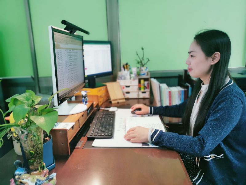 在新冠肺炎疫情这一特殊时期,教务秘书一职的工作内容也发生了很大的变化,接受了很大的挑战,2020年上半年,所有的课程都改为线上进行,为了使得整个的教学环节流畅进行,在党政的领导下,配合各任课老师做好课程调整安排,她跟教研室负责人不断的沟通交流,调整教学计划去适应变化,仅仅上半年就排课三次。并且在课后去追踪课程的实施情况,每周收集任课老师的教学实施方案、教案,收集信息员反馈的上课情况,再互相反馈,促进线上教学不断完善,提升了线上教学的教学质量。