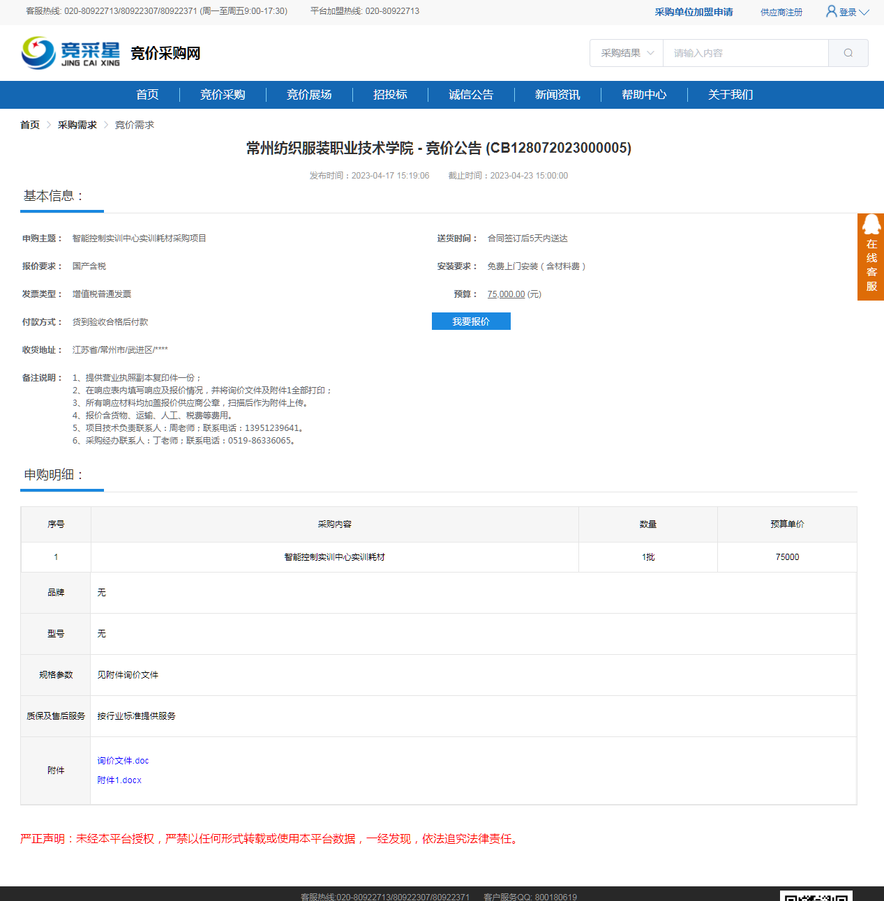 【采购公告】智能控制实训中心实训耗材采购项目询价公告