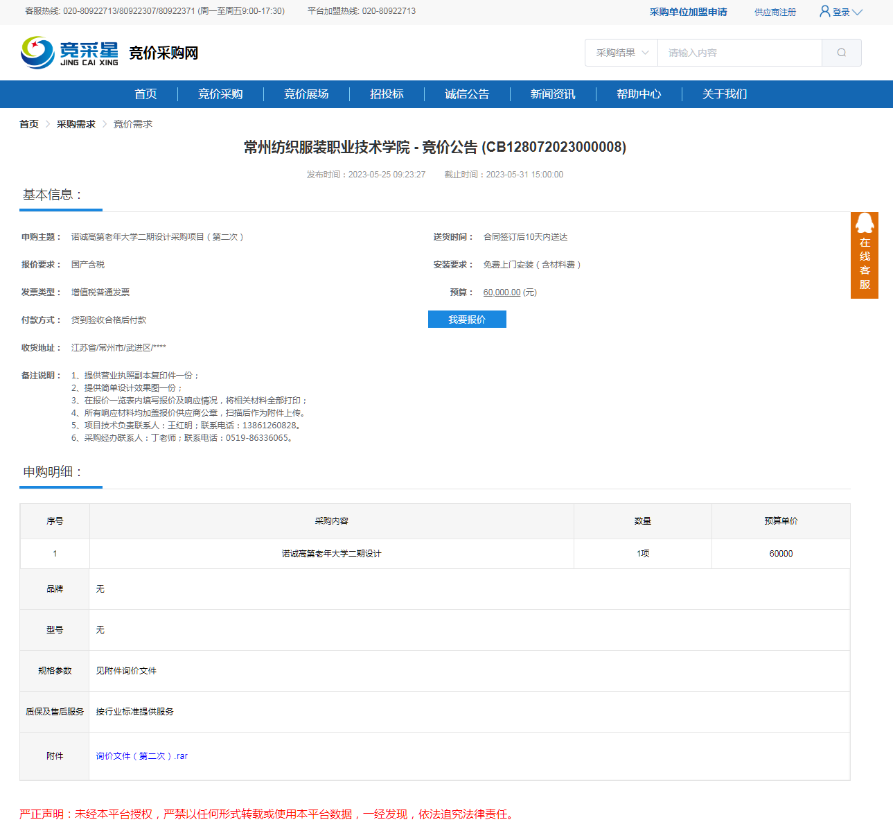 【采购公告】诺诚高第老年大学二期设计采购项目询价公告(第二次)