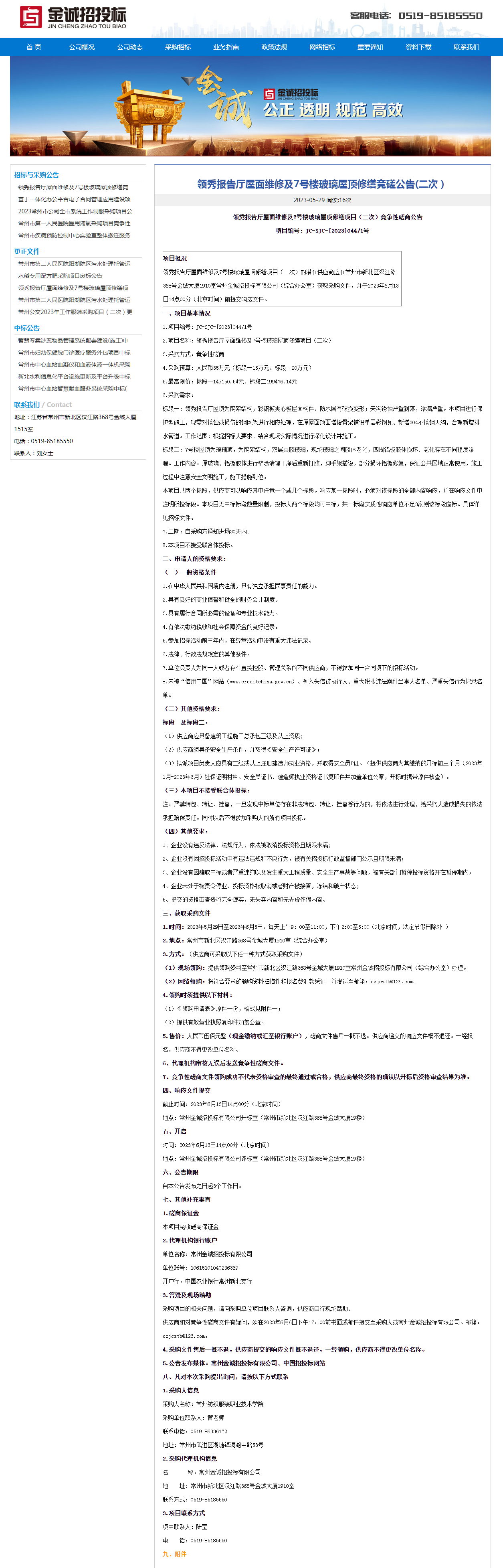 【采购公告】领秀报告厅屋面维修及7号楼玻璃屋顶修缮项目竞争性磋商公告(第二次)