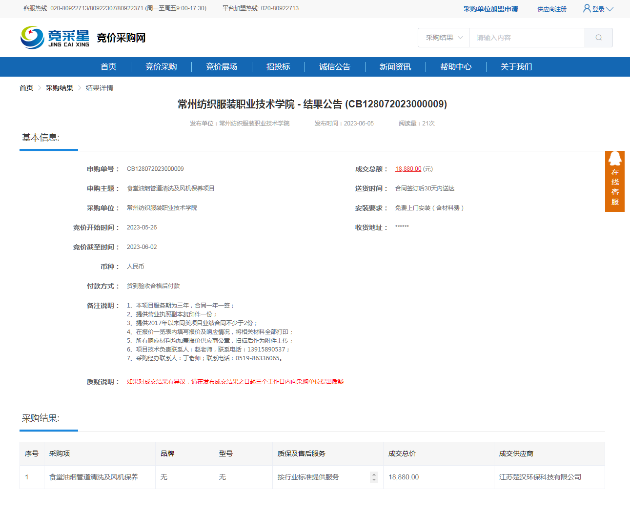 【成交公告】食堂油烟管道清洗及风机保养项目成交公告