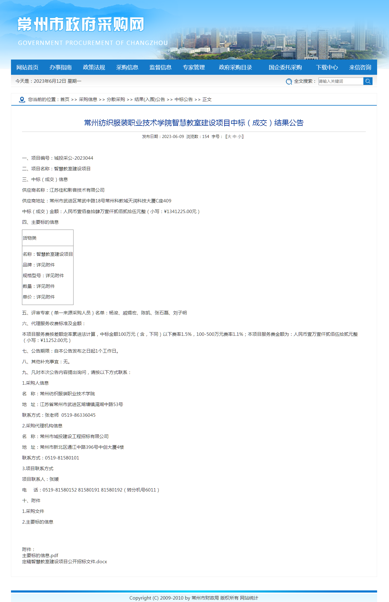 【中标公告】智慧教室建设项目中标结果公告