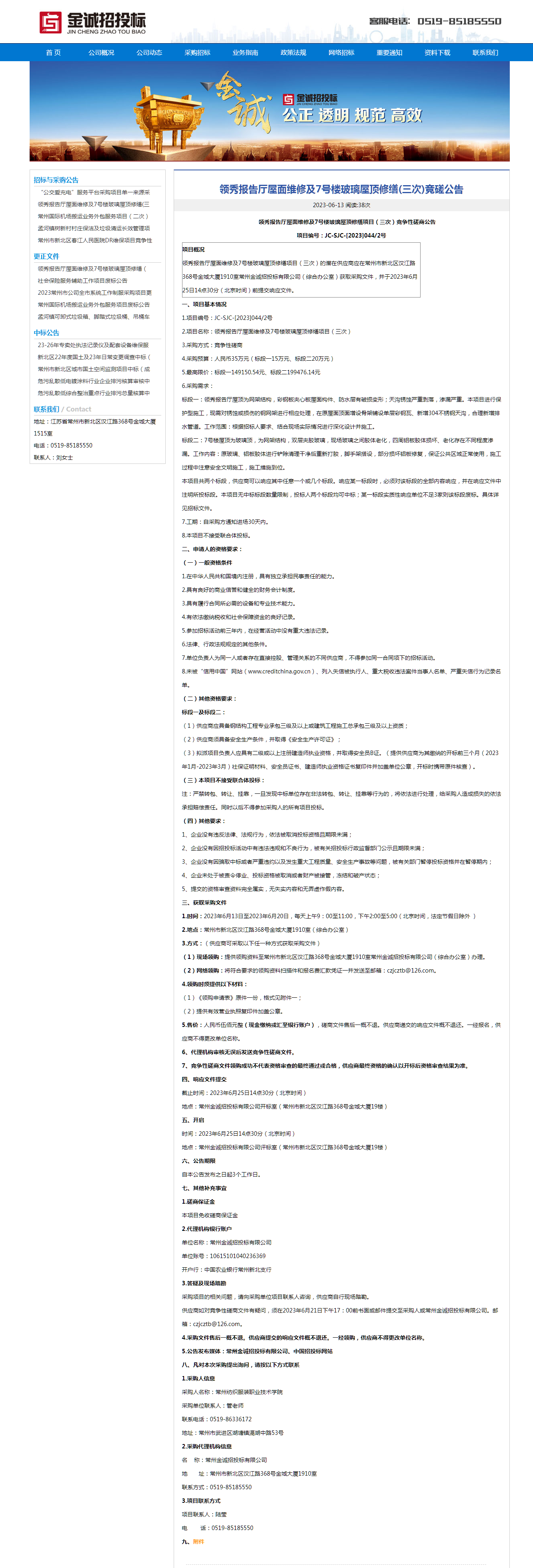 【采购公告】领秀报告厅屋面维修及7号楼玻璃屋顶修缮竞争性磋商公告(第三次)