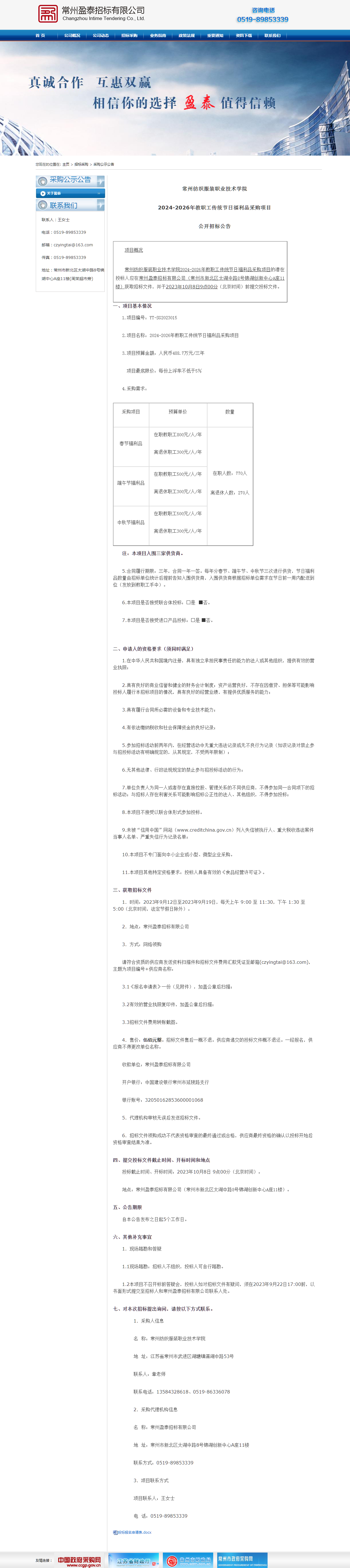 【招标公告】2024-2026年教职工传统节日福利品采购项目公开招标公告