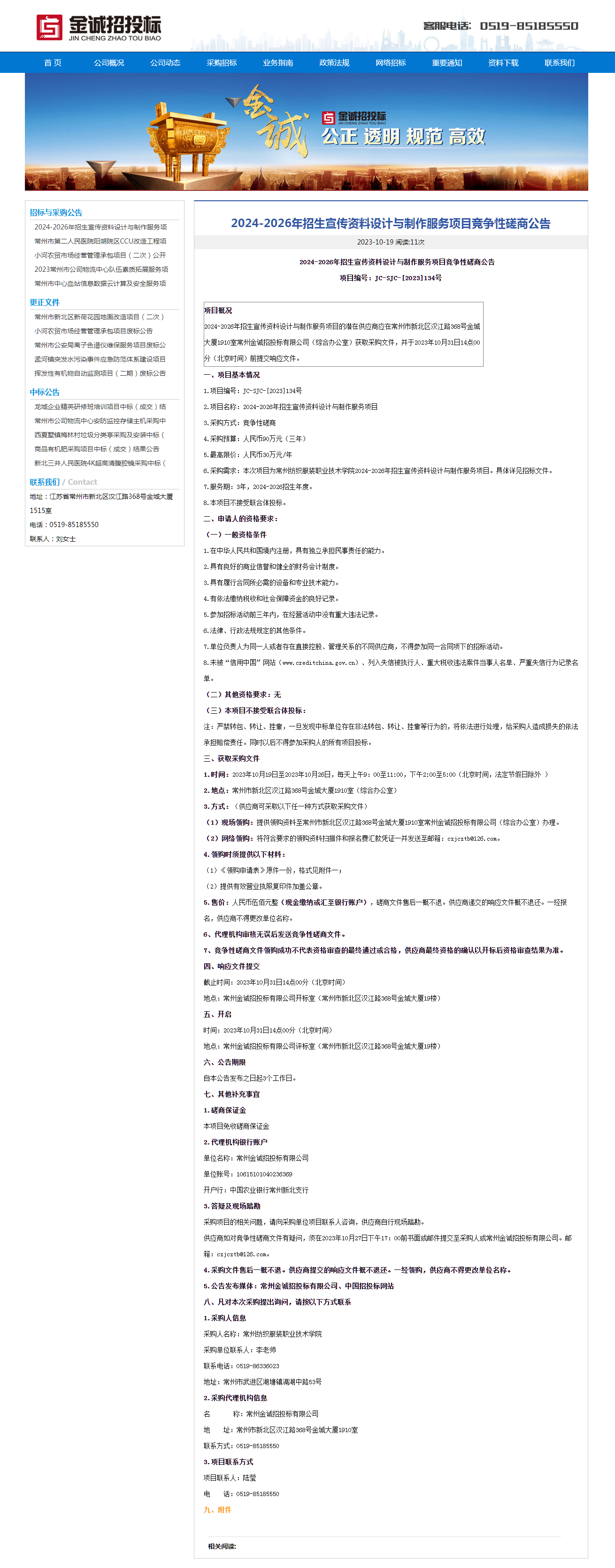 【采购公告】2024-2026年招生宣传资料设计与制作服务项目竞争性磋商公告