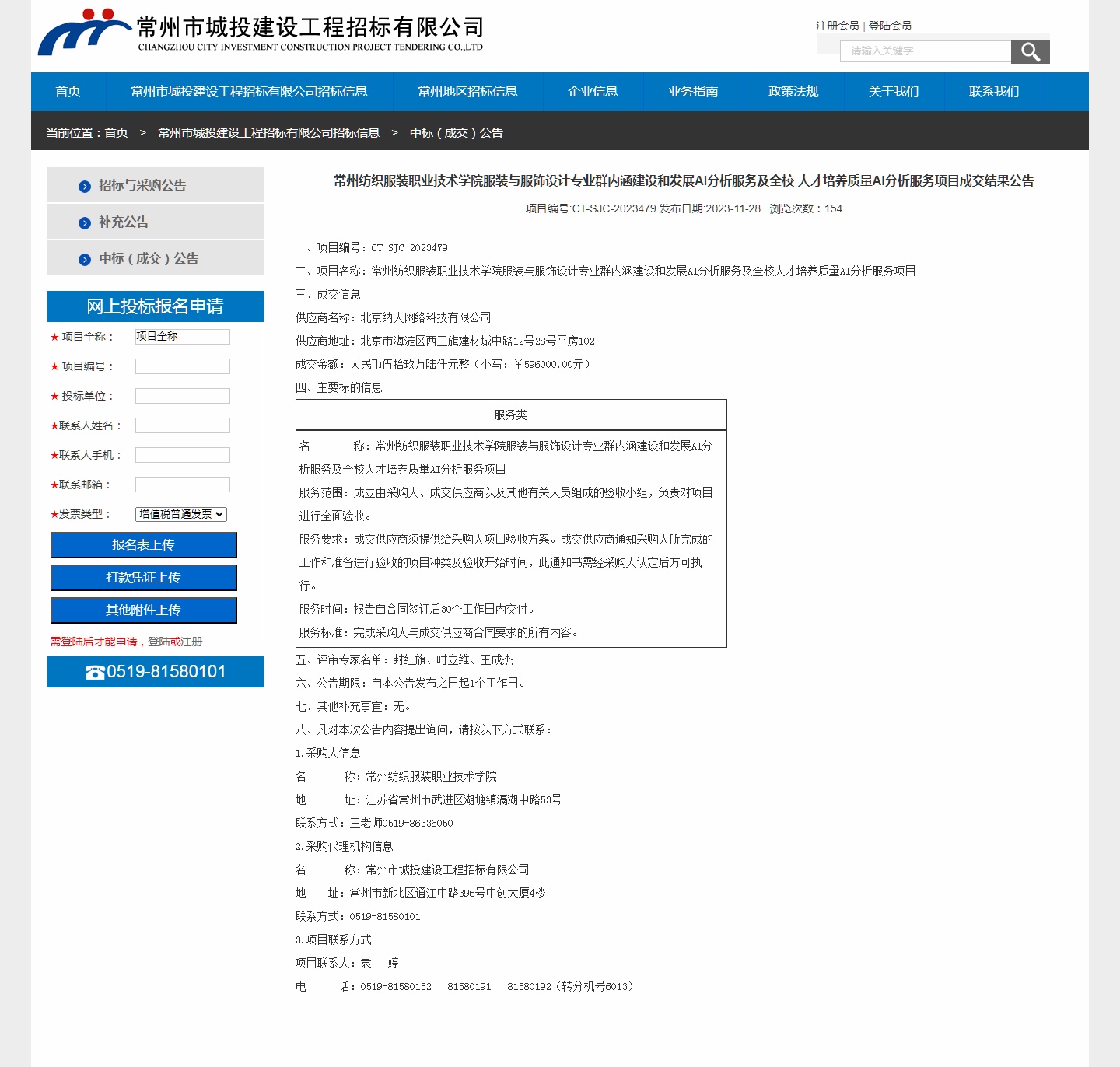 【成交公告】服装与服饰设计专业群内涵建设和发展AI分析服务及全校 人才培养质量AI分析服务项目成交结果公告
