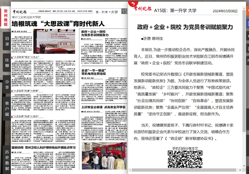 常州晚报|政府+企业+院校 为党员冬训赋能聚力