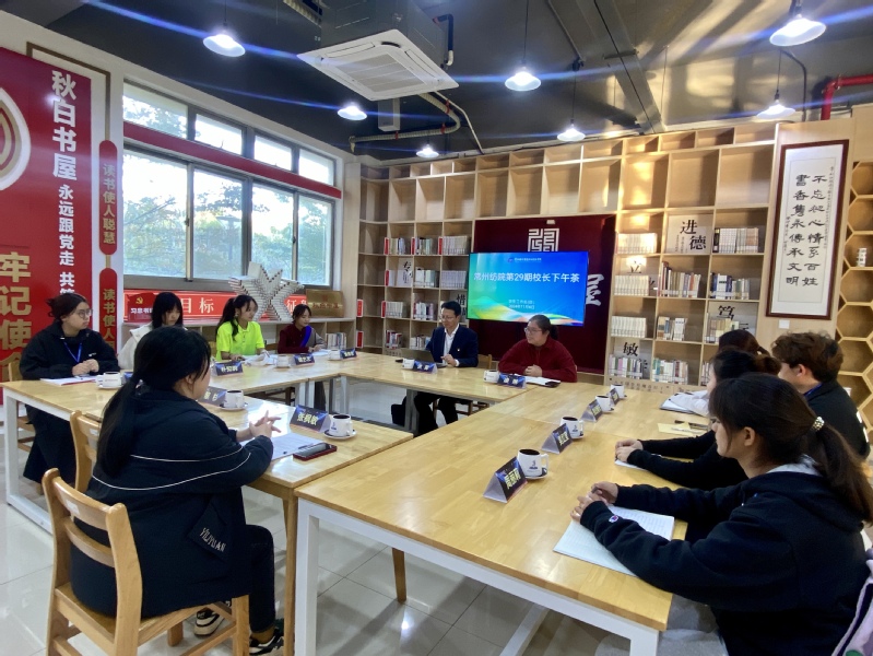 为深入贯彻习近平总书记关于铸牢中华民族共同体意识的重要指示精神,全面加强铸牢中华民族共同体意识教育,扎实推进少数民族学生教育服务与管理,助力学生成长成才。11月6日下午,我校在秋白书屋举办第29期“校长下午茶”活动。党委副书记、校长洪霄与少数民族学生代表相约下午茶。活动由学生处处长凌琳主持。