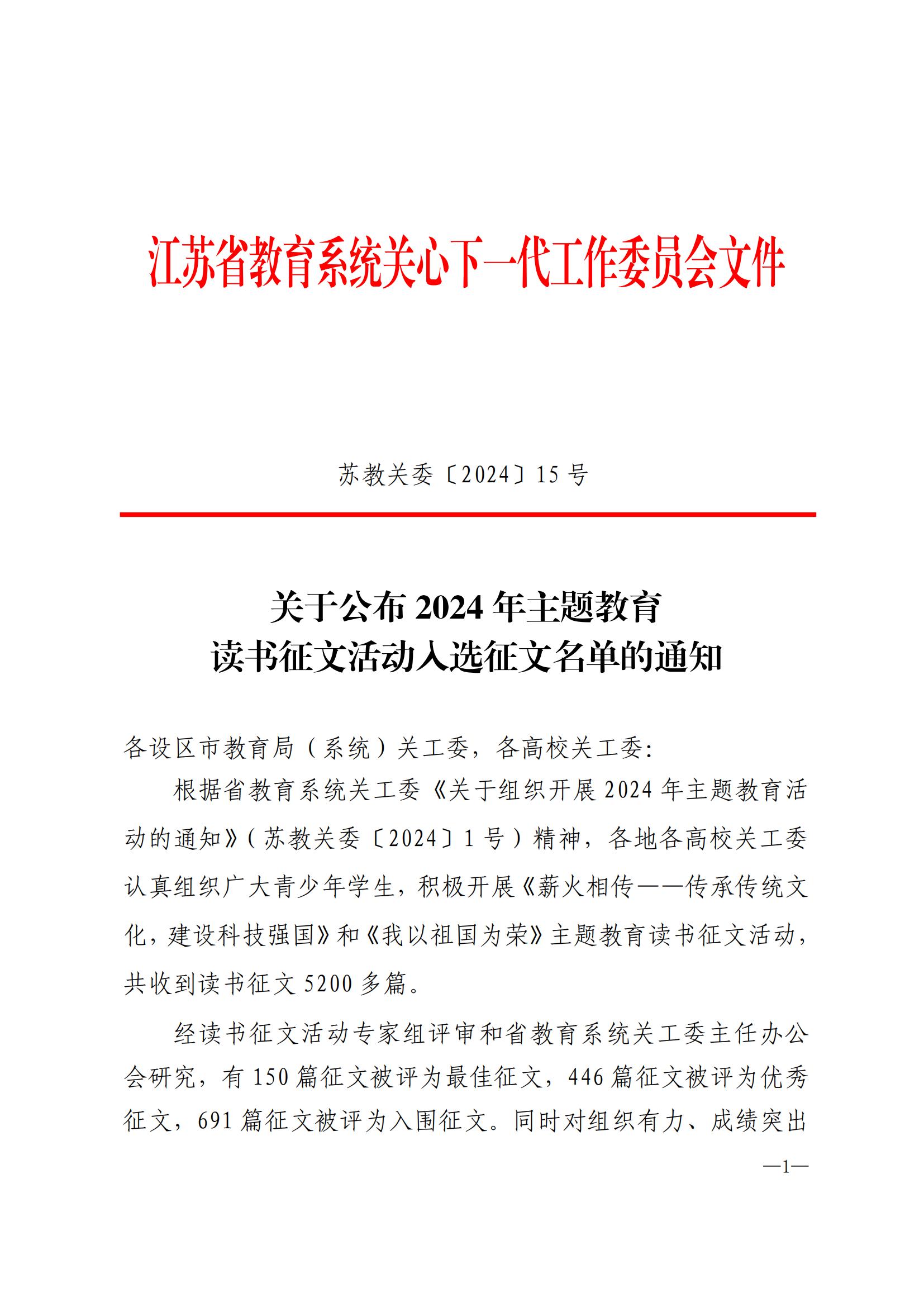 我校在省教育系统关工委“2024年主题教育读书征文活动”中获奖