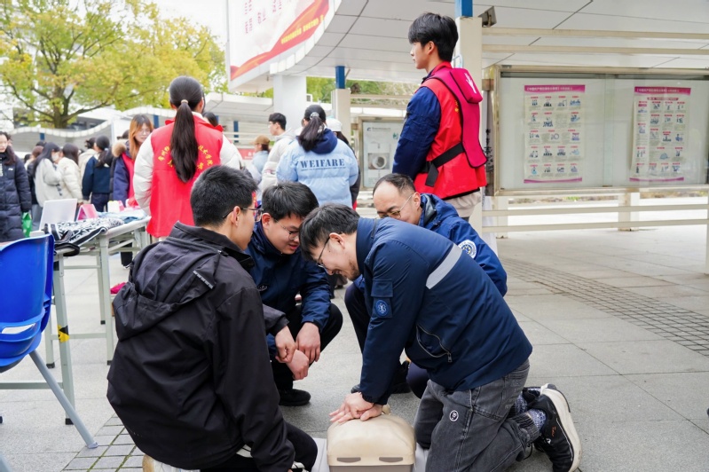 启动仪式结束后,各级团组织开展了“志愿服务集市”活动,以实际行动践行雷锋精神。在现场还特别邀请了常州市应急救护中心的志愿者现场指导同学们学习急救救护知识,后勤保障部的志愿者开展了“保持健康体重,助力健康人生”健康检查。