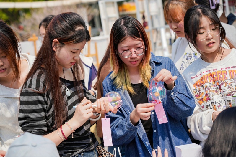开幕式后,41个静态社团展示区纷纷亮出“看家本领”,通过创意展示、传统文化互动等形式,展现社团的独特魅力。创意学院的艺术心理疗愈站吸引了众多同学驻足,在这里,同学们通过艺术创作舒缓压力、放松身心。数商学院的非遗手作台同样人气爆棚,非遗技艺让同学们感受到传统文化的深厚底蕴。此外,油画社成员以“绘韵流光”为主题的作品展览也吸引了大量目光,一幅幅精美的画作展现了同学们卓越的艺术创造力。活动现场人潮涌动,同学们穿梭于各个展位之间,积极参与互动,感受不同文化与艺术的碰撞。