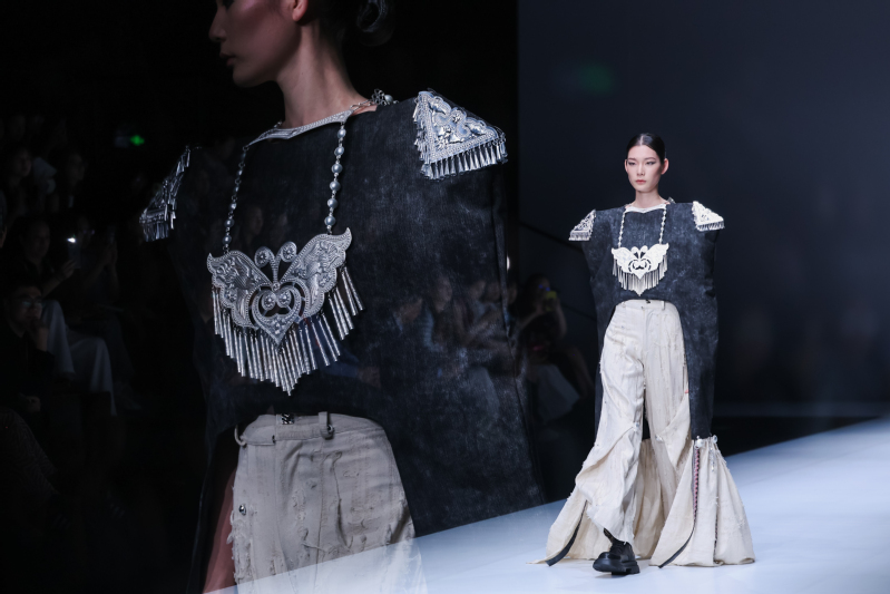 篇章三“焕承”以“焕”点明创新活力,以“承”紧扣传统根基,将地域文化和民俗特色融入现代服装设计理念,自然呈现新旧交融,使传统元素在现代服装中焕发生机,以此塑造富有活力的东方新形象。