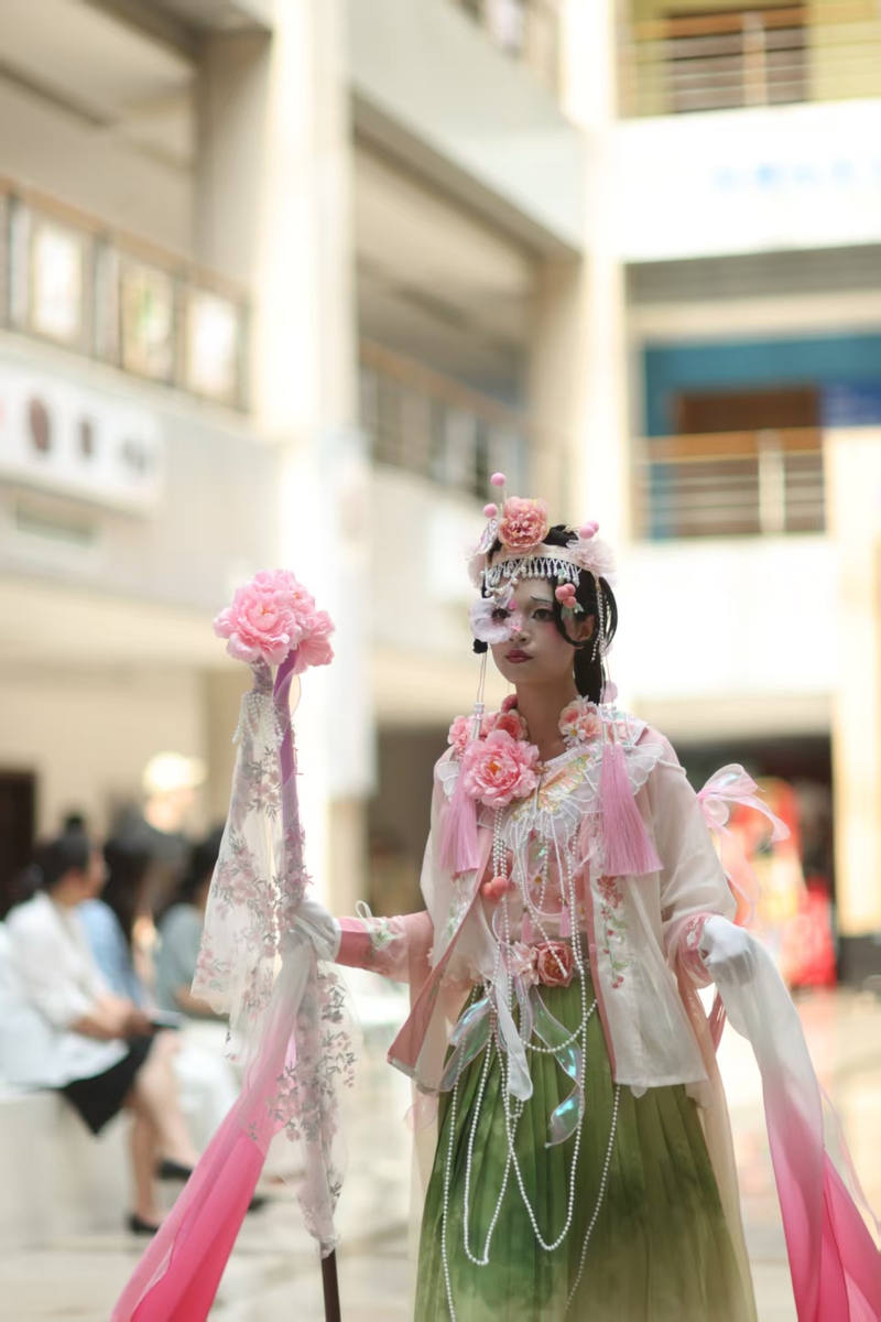 发布会现场,一件件精心设计的作品依次亮相,瞬间吸引了在场所有人的目光。这些作品通过发型设计、妆容搭配、饰品设计及服装造型等多维度的巧妙融合,展现出新时代年轻人独特的视角与创意。从中国传统纹样中提取的古朴韵味,从少数民族艺术元素里汲取的灵动色彩,再到几何图形造型带来的现代感,设计者们大胆运用廓形、材质、工艺、色彩,对传统与现代进行全新的解读,为观众带来了一场前所未有的视觉享受。每一组作品都凝聚着师生们的智慧与汗水,彰显着他们对专业的执着追求与无限热爱,现场不时响起阵阵掌声与赞叹声。