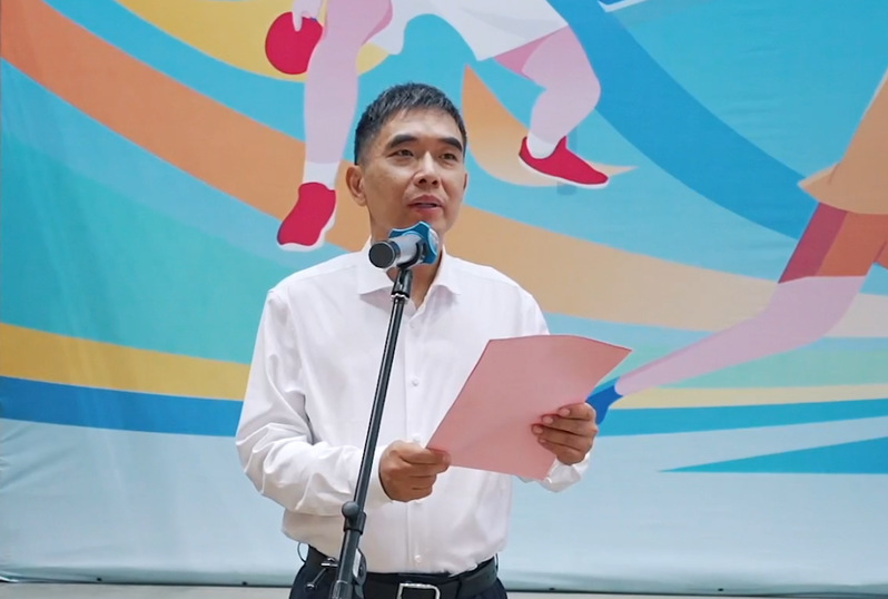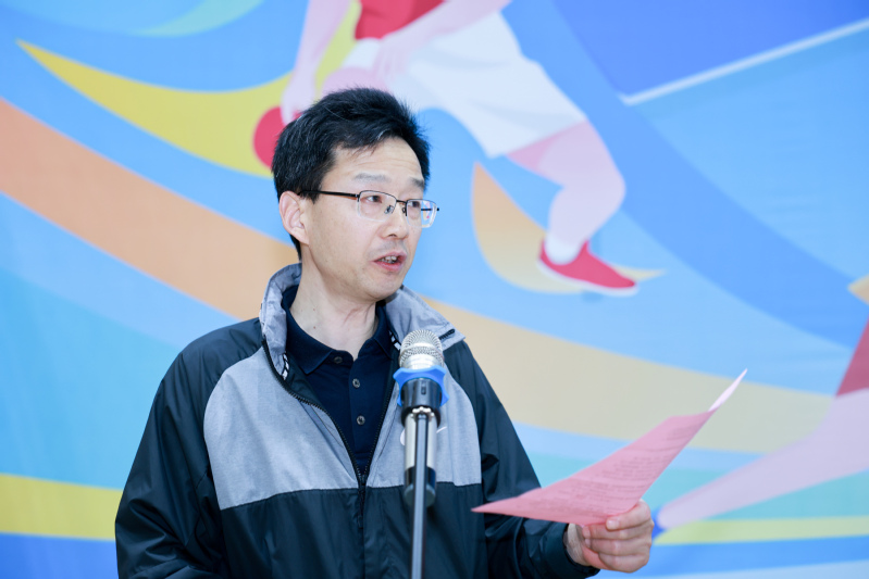在庄严的国歌奏唱仪式后,我校党委书记吴访升致开幕辞,他强调此次赛事不仅是竞技舞台,更是深化校际交流、推动校园体育文化建设的重要契机,希望各参赛队伍以球为媒,增进友谊。随后,运动员代表、我校党委委员、副院长张文明庄严宣誓,承诺将恪守规则、顽强拼搏;裁判员代表李博雅也郑重宣誓,保证以专业、公正的态度履行职责。最后,王钦利宣布比赛正式开幕,点燃了现场的热烈氛围。