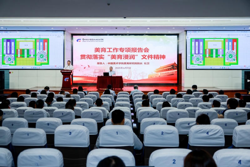 为深入贯彻新时代美育工作要求,进一步提升我校教师美育教学与科研能力,扎实推进学校美育工作高质量发展,6月9日,学校党委组织部、教务处联合举办美育工作专题培训会。会议特邀中国美术学院美育研究院院长杜卫教授作专题辅导报告。全体中层及以上干部、各二级教学单位全体教师参加培训。党委委员、副校长马昀主持会议。