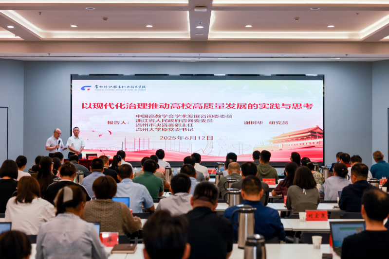 为进一步强化干部素质能力建设,提升学校治理体系和治理能力现代化水平,学校特邀中国高教学会学术发展咨询委委员、浙江省人民政府咨询委委员、温州市决咨委副主任、温州大学原党委书记谢树华研究员来校作专题报告。学校科级及以上干部参加报告会,报告会由党委书记吴访升主持。