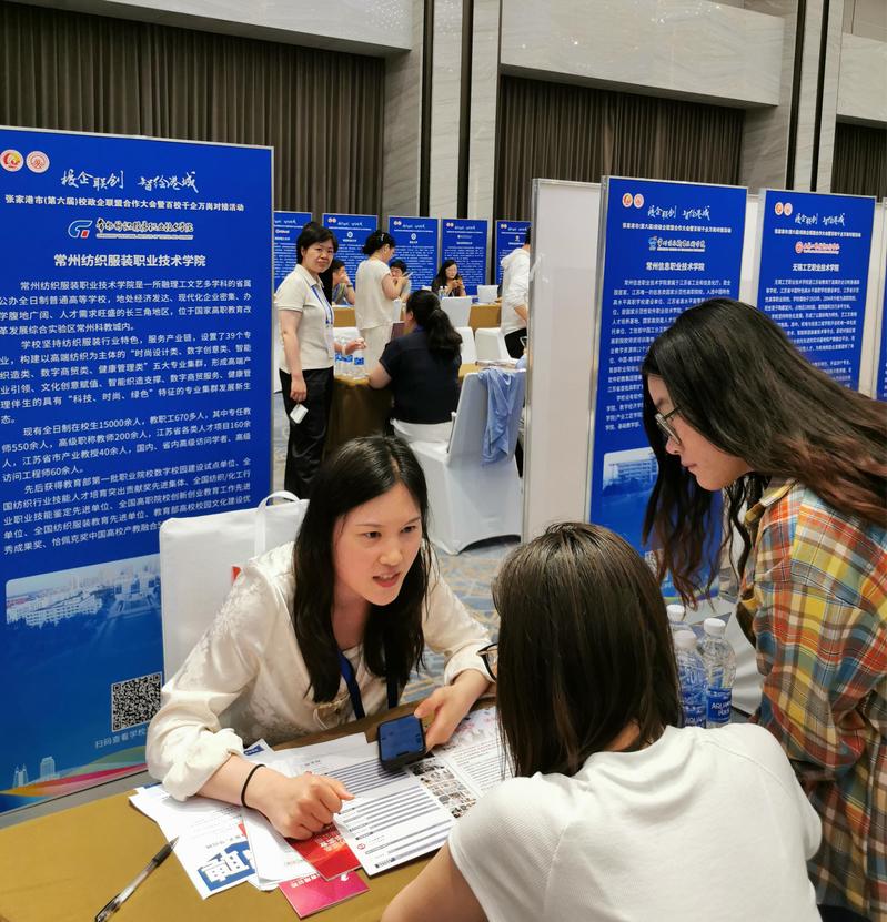 会上,张家港市委书记韩卫表示,张家港承诺为各类人才搭建广阔舞台,为校政企合作提供全要素保障。大会期间,举办了百校千企万岗对接活动(张家港专场),我校展位上人头攒动,数十家张家港纺织服装企业咨询学院毕业生情况,后续将做好对接工作。