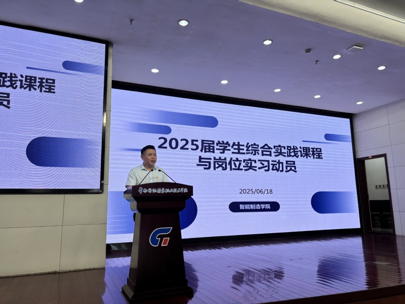 动员会上,智能制造学院院长李爱红首先作岗位实习动员讲话。她结合行业发展趋势与学院人才培养目标,提出正确认识就业形势,重视岗位实习;迅速完成角色转换,从容应对岗位实习挑战;深入了解行业发展趋势,明确职业发展路径;深刻理解岗位实习意义,明确岗位实习学习内容;提升安全意识,践行安全规范等5点要求,强调岗位实习是“将课堂所学转化为岗位能力”的关键环节,鼓励学生以“吾将上下而求索”的心态主动融入企业,在实践中锤炼“工匠之心”。