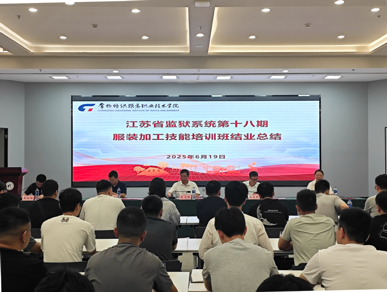 6月19日上午,江苏省监狱系统第十八期《服装加工技能》培训班结业式在领秀展厅隆重举行。江苏省监狱局党委委员、副局长、方源集团副总经理朱志良,江苏省监狱局刑务劳动管理处处长凌国杭及相关处室领导,校党委委员、副校长张文明,服装与时尚设计学院和继续教育学院等相关负责人、教师代表和全体参训学员出席会议。会议由服装与时尚设计学院院长袁红萍主持。