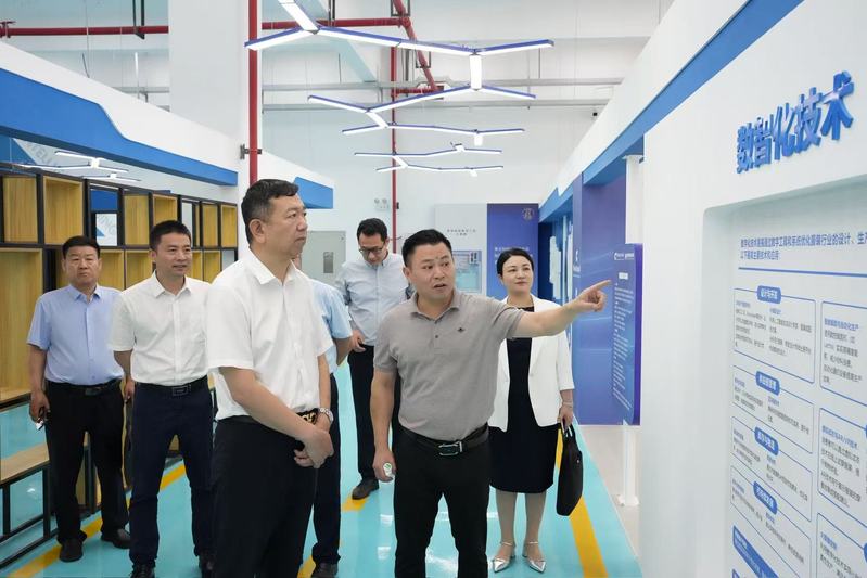 开幕式结束后,杨理事长等领导和嘉宾在智能制造学院领导陪同下,参观了服装智能产线教学工场,纺织科技文化馆。