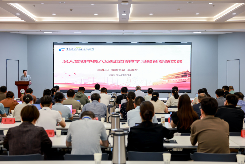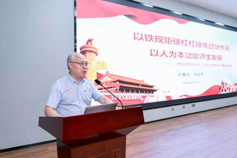 为巩固和扩大深入贯彻中央八项规定精神学习教育阶段性成果,促进党员干部思想政治和能力作风建设,2025年6月27日,学校党委书记吴访升以“以铁规矩硬杠杠锤炼过硬作风,以人为本赋能师生发展”为题,就深入贯彻中央八项规定精神学习教育为全体中层干部、党委委员、纪委委员、新提拔干部等上专题党课。党委委员、组织(统战)部部长高江荣主持专题党课。