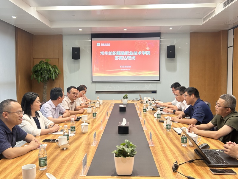 在苏美达国际大厦302会议室,校企双方围绕“产教融合赋能新质生产力”主题展开深入交流。首先,朱凯对我校一行的到来表示欢迎,并系统介绍了公司全球化布局、技术迭代及人才梯队建设情况。洪霄对公司的热情接待表示感谢,并介绍了我校60多年来始终坚持服务纺织服装产业的办学理念及“十四五”期间取得的成效,围绕学校“十五五”发展规划“外延与内涵”两个维度,就“纺织服装+”专业体系发展思路作了重点阐述。马昀指出,教育链作为产业链中的重要一环,是相互依存促进的关系,他以我校服装类专业“现场工程师”班为例,从不同阶段的培养方式全面系统介绍了学校深化产教融合推进高素质技术技能人才培养范式变革的举措。公司人力资源部(党委组织部)经理王扬介绍了公司人才需求、晋升通道及培养模式。服装技术研发数化组负责人韦咏凯分享了公司技术中心实习生全流程培训带教案例,并对“3D建模与AI技术驱动的复合型人才培养”提出建议。最后,校企双方与会人员还围绕纺织新材料、服装数字化、IE管理、智能设备维护等方向的人才定位、岗位能力标准及校企协同育人机制方面达成多项合作共识。