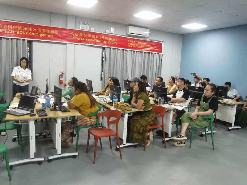 之后,常纺(缅甸)丝路学院首期服装技能培训班在缅甸制衣协会服装人才发展中心举行开班仪式。缅甸制衣协会董事长Daw Aye Mi Shein,缅甸中国服装协会会长施坤,深圳市博克时代科技开发有限公司代表,我校赴缅甸代表团以及缅甸参训学员参加了活动。本次培训共吸引十余家在缅中资服装企业选派优秀员工参加培训。我校服装专业教师针对缅甸中资服装企业的需求制定特色课程并开展教学。课程获得了学员们广泛欢迎和认可。