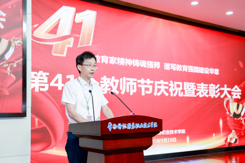 金秋送爽,桃李芬芳。9月10日下午,我校第41个教师节庆祝暨表彰大会在校务中心一楼报告厅召开,并在领秀展厅设置了分会场。学校党委书记吴访升,党委副书记、校长洪霄,党委副书记王顺明,党委委员、副校长马昀,党委委员、纪委书记林素琴出席会议,全体教职工参加大会。大会由王顺明主持。