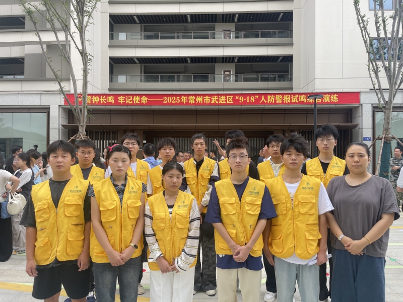 9月18日,我校教师陈玳带领小绿芽志愿者协会学生,走进湖塘北庙桥社区,参与常州市武进区“9・18”人防警报试鸣综合演练,与近百名社区居民、党员及志愿者共筑安全防线。