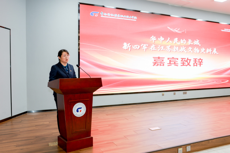 《华中人民的长城——新四军在江苏抗战文物史料展》启动仪式随后举行。中共溧阳市委党校副校长、新四军江南指挥部纪念馆馆长张燕在致辞中表示,此次展览通过珍贵文物和史料,生动再现新四军在江苏浴血抗战的光辉历程,展现华中抗日根据地作为“人民长城”的重要作用,旨在铭记历史、缅怀先烈,传承伟大的抗战精神,是推动红色资源融入“大思政课”的重要实践。在热烈的气氛中,市委宣传部常务副部长汪忠泽、新四军江南指挥部纪念馆馆长张燕、新华日报报史馆负责人颜彦、常州纺院党委书记林刚共同启动巡展。新四军江南指挥部纪念馆讲解员陈惠芳带来的微党课《塘马战歌》,以声情并茂的讲述将观众的思绪带回烽火连天的抗战岁月,深刻感受革命先辈的铮铮铁骨。